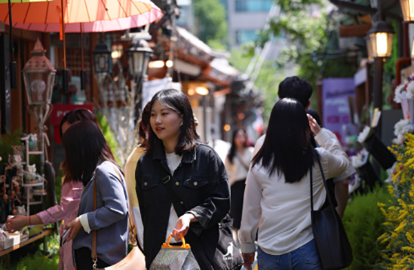 人们在韩国首尔益善洞逛街。新华社 资料图