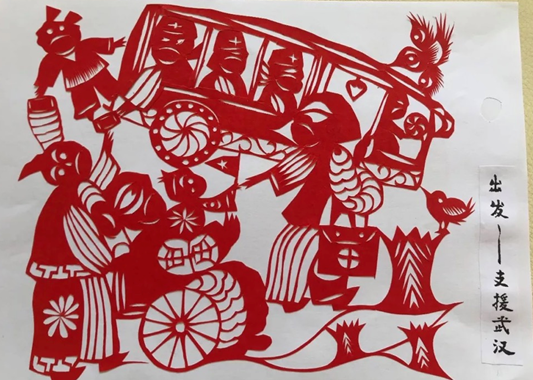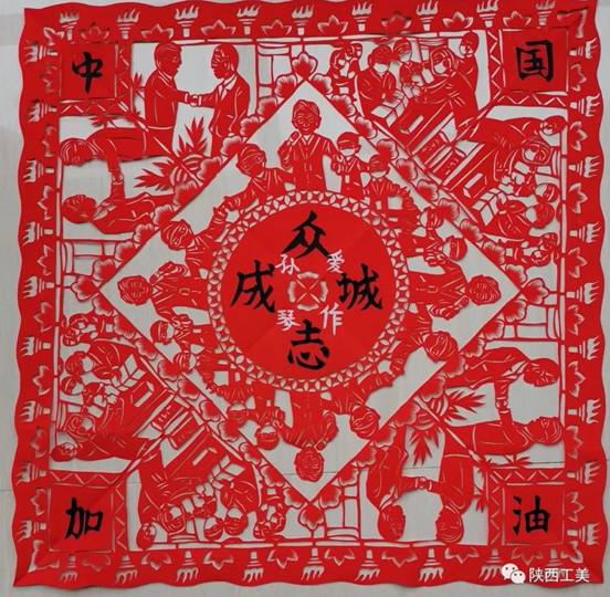 陕北榆林剪纸艺术家孙爱琴 《中国加油、武汉加油》