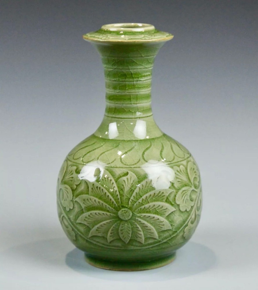 耀州瓷器作品《耀瓷雕花牡丹纹唐氏瓶》