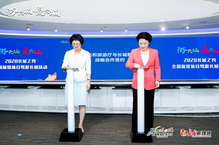 长城网9月19日讯(记者 王璇)9月19日,河北省文化和旅游厅与长城新媒体集团在“游长城 爱长城——2020长城之约·全国新媒体自驾游长城活动”启动仪式上签署战略合作协议,开启崭新征程。省委宣传部副部长、省文化和旅游厅党组书记、厅长那书晨,长城新媒体集团党委书记、董事长马来顺出席签约仪式。河北省文化和旅游厅党组成员、副厅长王荣丽和长城新媒体集团党委副书记、总编辑赵兵代表双方签署协议。