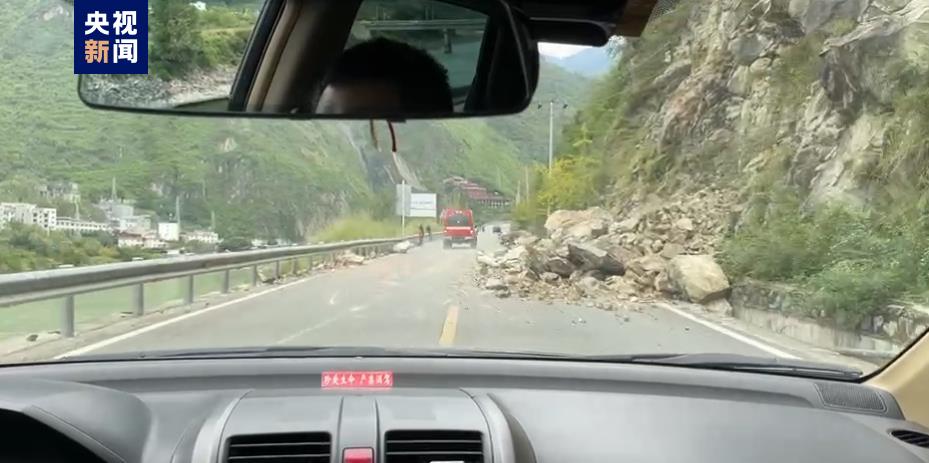 四川甘孜州消防救援支队全勤指挥部已行至震中约24公里,沿路发现大量垮塌石块。