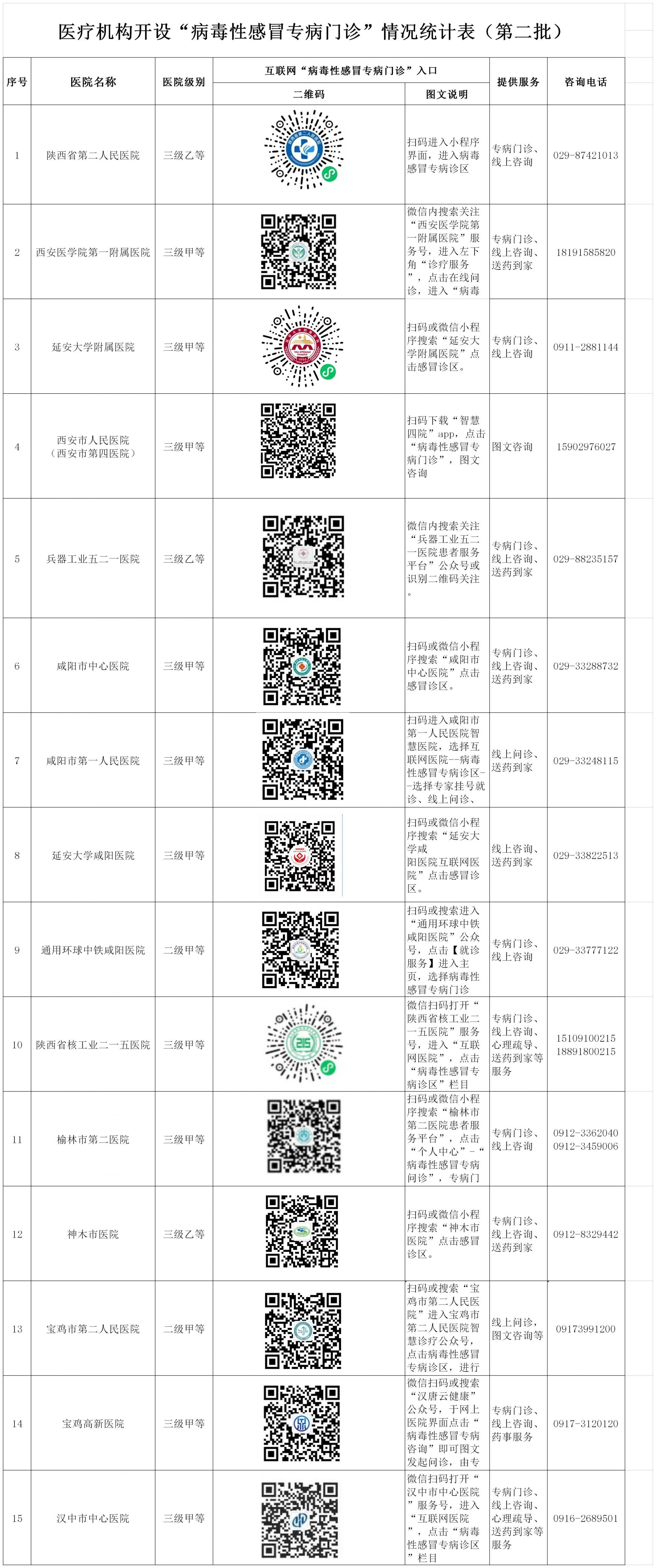陕西公布开设“病毒性感冒专病门诊”医疗机构名单(第二批)