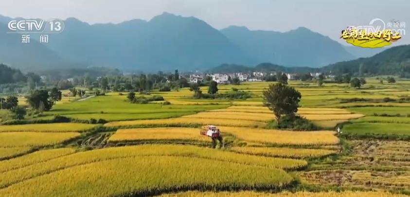 安徽旌德:群山绕田野 水稻陆续进入收割期