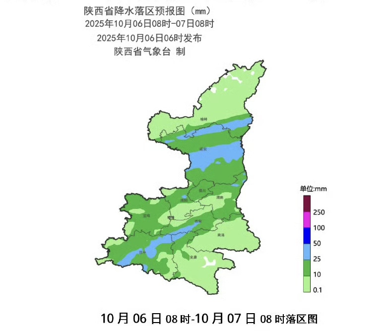 陕西省降水落区预报图(2025年10月6日08时—7日08时)