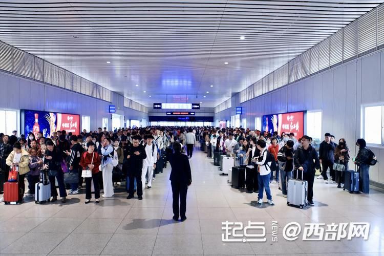 10月7日,国庆中秋假期第七天,陕西铁路迎来返程客流高峰。起点新闻·西部网记者从中国铁路西安局集团有限公司(以下简称“西安铁路局”)获悉,陕西铁路预计今日(10月7日)发送旅客64.6万人次。截至10月6日18时,假日运输陕西铁路已累计发送旅客374.9万人次,日均发送62.5万人次,运输秩序安全平稳。