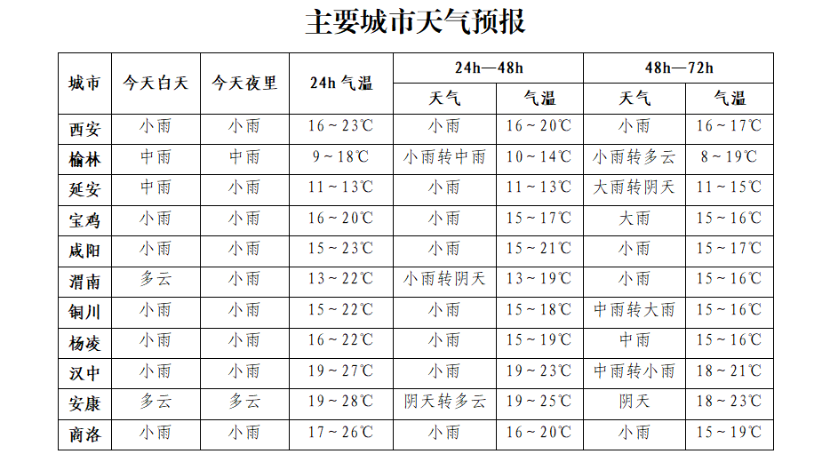 据了解,未来3天,陕西仍以阴雨天气为主。具体天气预报如下: