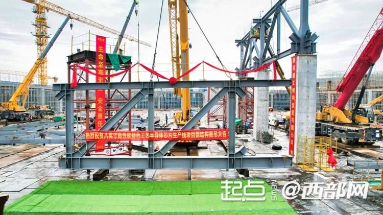 陕西电子8英寸高性能特色工艺半导体芯片生产线项目钢结构首吊成功