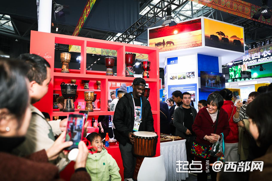 来自非洲的客商现场表演别具特色的鼓点舞,引得众人纷纷称赞。