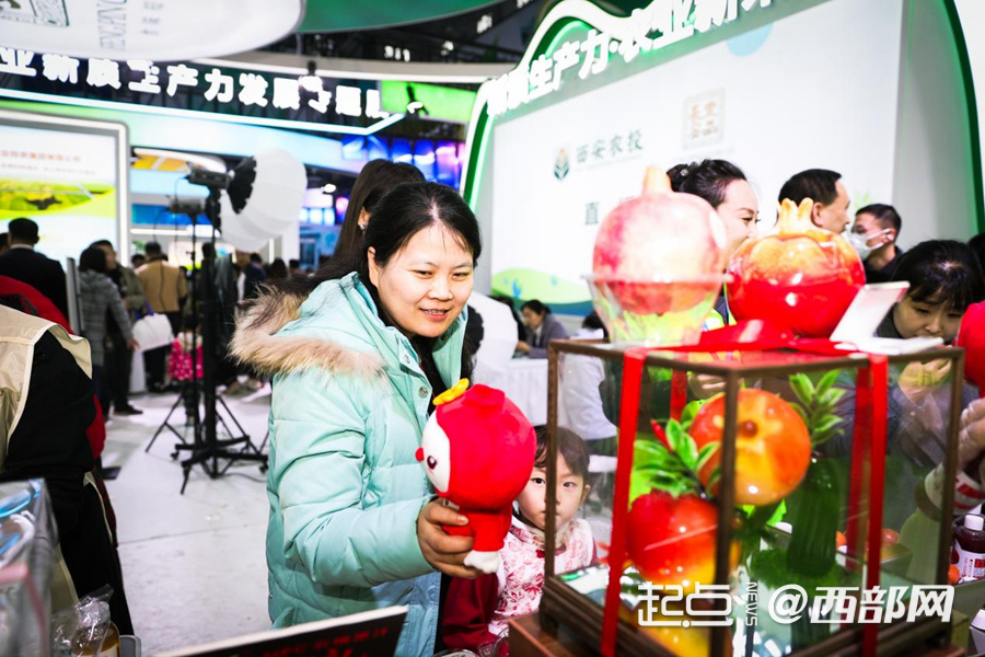 在农高会西安馆里,以石榴为原型制作的文创玩偶吸引了游客的目光。
