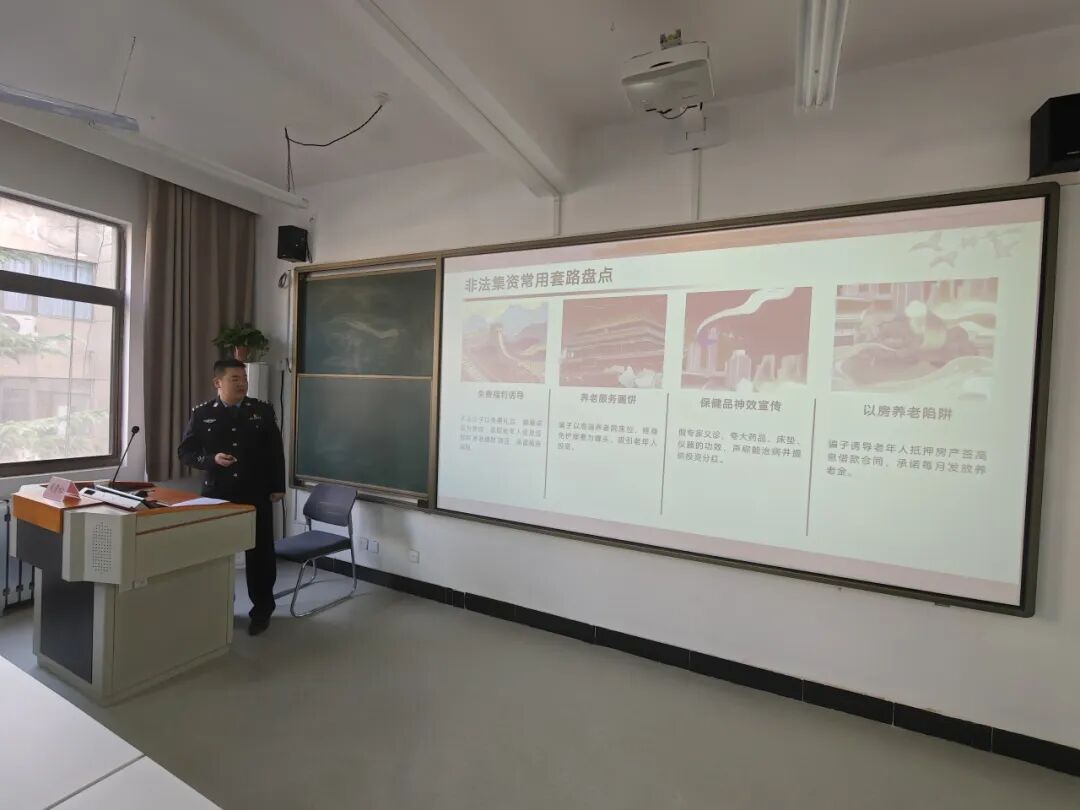 讲座伊始,警长周清松系统阐述了我国人口老龄化的现状与发展趋势。他表示,当前我国已进入中度老龄化社会,这一趋势不仅带来养老服务需求的显著增长,也使老年人成为电信诈骗、非法集资等违法犯罪的重点目标。在此背景下,切实守护老年群体权益,成为应对人口老龄化的重要课题。