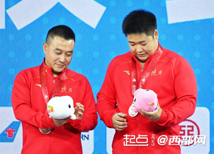 陕西队刘欣欣获得全运会男子举重96公斤级决赛铜牌。