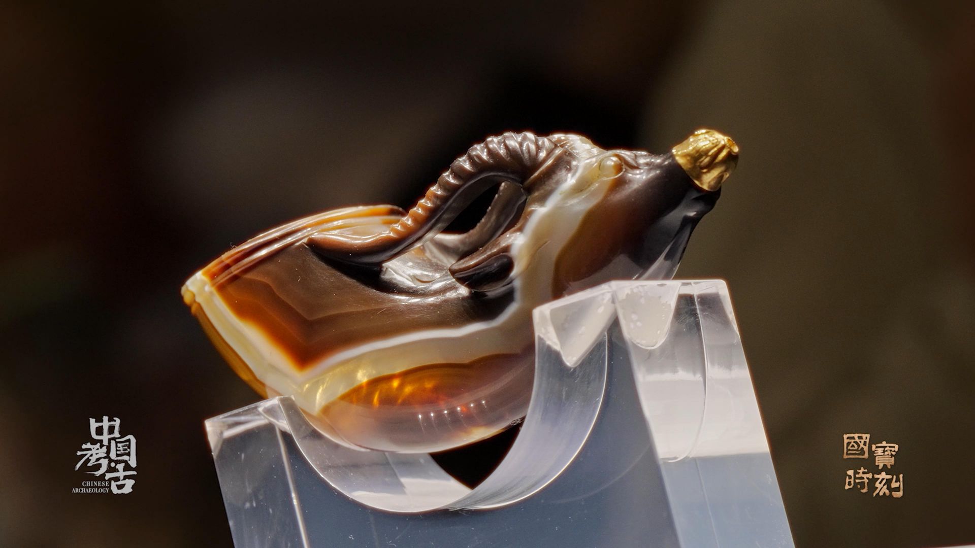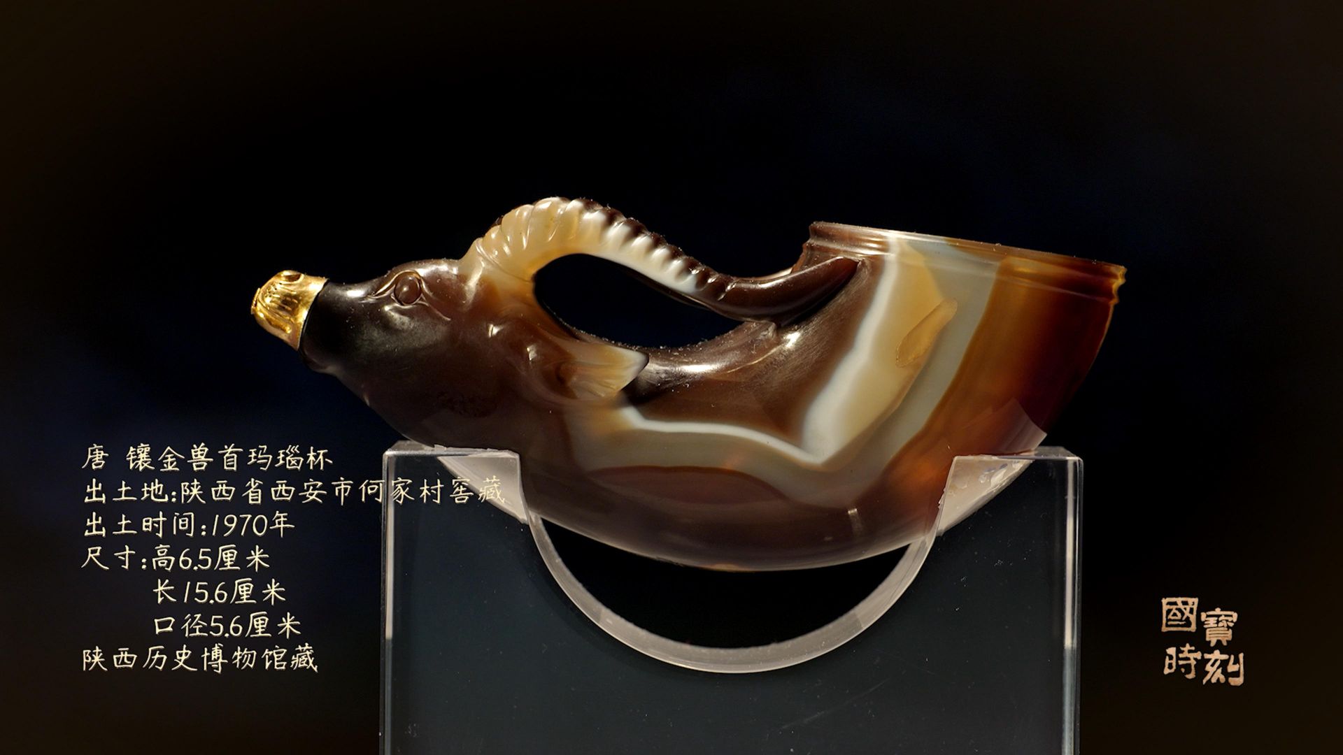 玛瑙为身,镶金为首。一段丝路传奇,凝于宴饮之器。它盛放过西域的葡萄美酒,也见证过长安的万千气象。何等匠心,敢琢罕见玛瑙成器?何等气度,能融丝路风情入唐?《国宝时刻》为您揭秘。