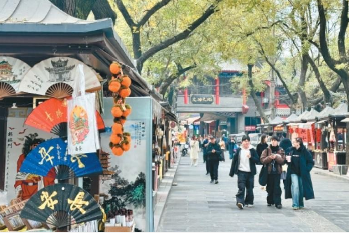12月7日,市民游客在书院门休闲游览。在这里,笔墨纸砚、文玩字画琳琅满目,人们漫步其间,在墨香中感受古城西安独特的文化魅力。记者 郝钟毓 摄