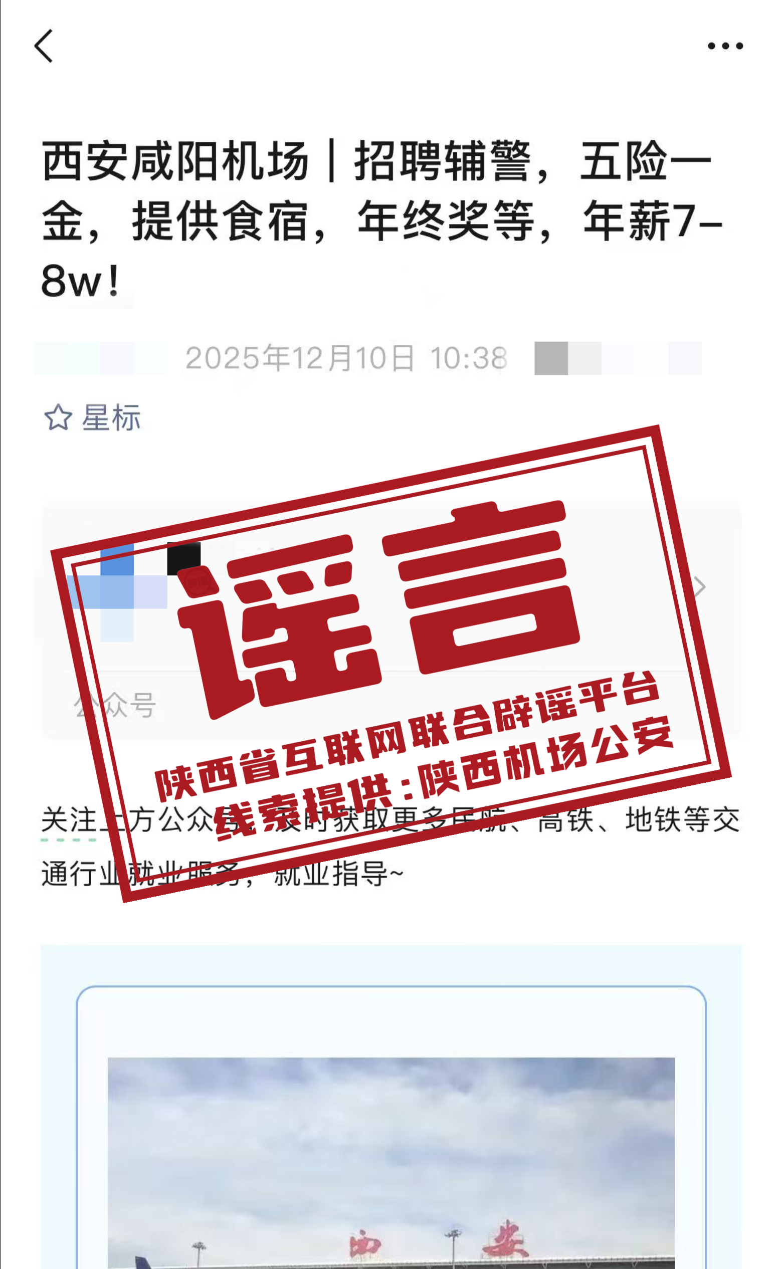 陕西咸阳机场招聘辅警? 官方回应:均为不实信息
