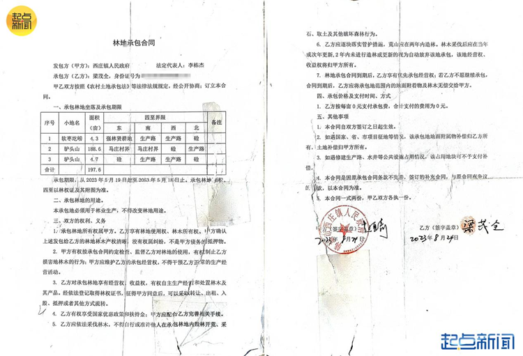 然而,2023年在办理林权证的过程中,西庄镇政府组织人员对梁师傅家人承包的林场进行了重新测量,结果测量面积仅为197.6亩。“这相差的400亩林地究竟去了哪里?”梁师傅对此十分不解。