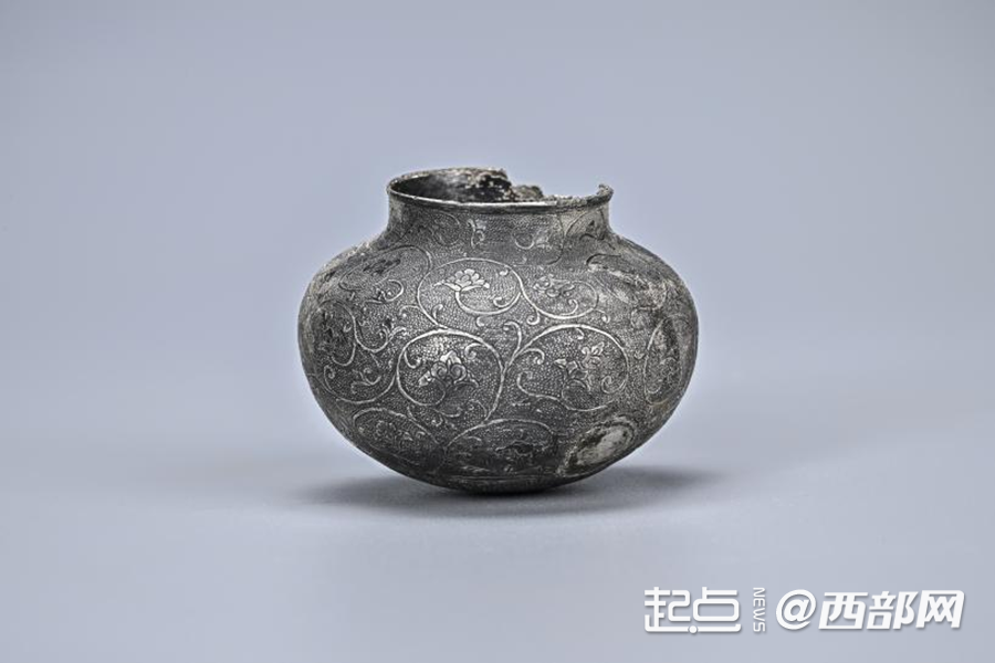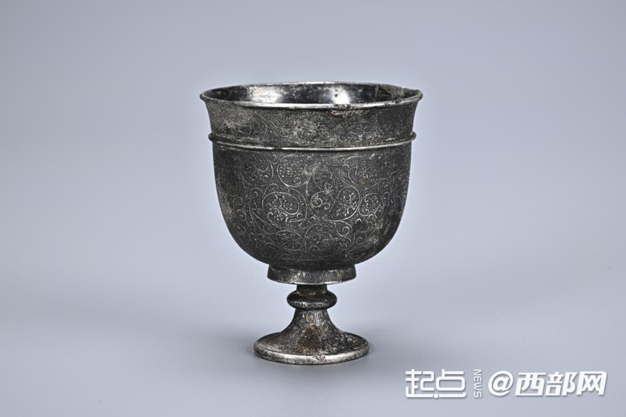 该墓随葬的金银器多为女性发饰及盛贮器,墓中所出的银三足罐及银高足杯,纹饰繁复,制作精美,器身以葡萄忍冬纹为主纹,可见当时中原与西域地区交往密切。此外,墓中还出土波斯萨珊银币共19枚——银币正面为波斯萨珊皇帝库思老二世,背面则是拜火教的祭坛。