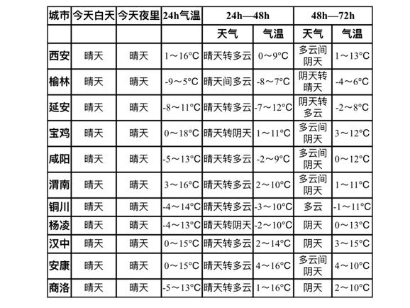 陕西主要城市天气预报