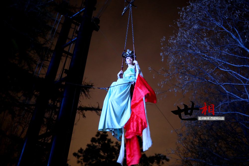 九龙湖畔,第四场演出的尾声临近,闫潇最后一次系好威亚,缓缓升空。冬夜的风吹动她的裙摆,秋千荡开弧线,远处骊山的轮廓隐入夜色。20米高空,她依然是那个从甘肃来的姑娘,也依然是千年前骊宫一瞥的杨玉环。她把八年青春留在这里,把每一个春节留在空中。