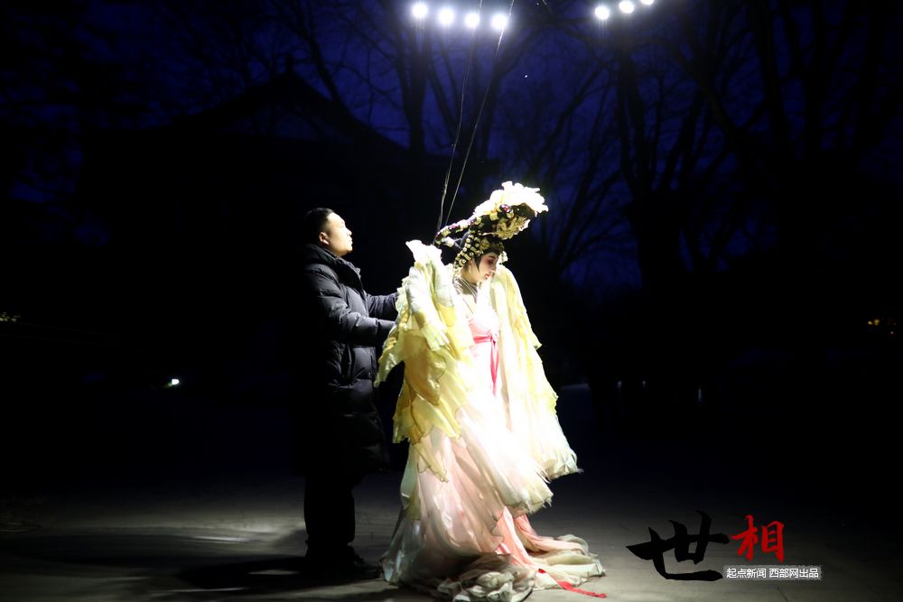 丙午马年新春,西安华清宫九龙湖畔,《长恨歌》即将开演。演员闫潇正在后台检查威亚锁扣,长长的贵妃裙摆在脚下铺开。“这两个扣子,你必须得一直拎着,还得拎着自己的裙子,跑到定点让别人给你系。一定要保证扣子不能进到衣服里去。”这是她在华清宫度过的第八个春节,也是第八年扮演飞天贵妃。
