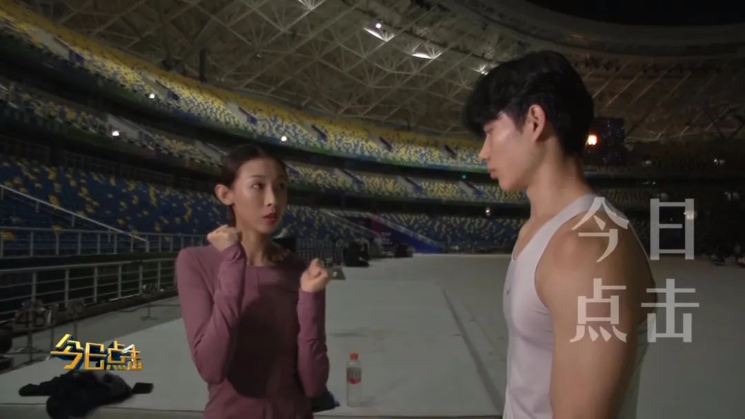 每天至少要(练)六、七个小时,因为我们两个是杂技演员,专业是杂技,然后这次呢,你又要跑调度,要跳舞,来技术,所以说对我们来说,这一次是一个非常好的突破吧,对自己。