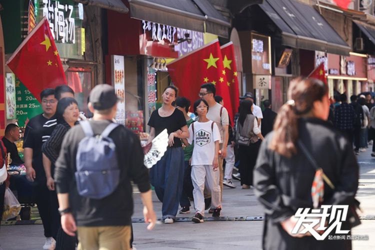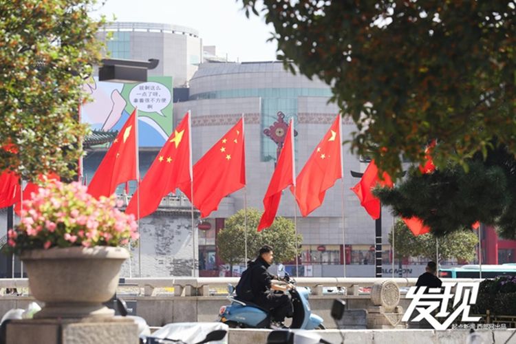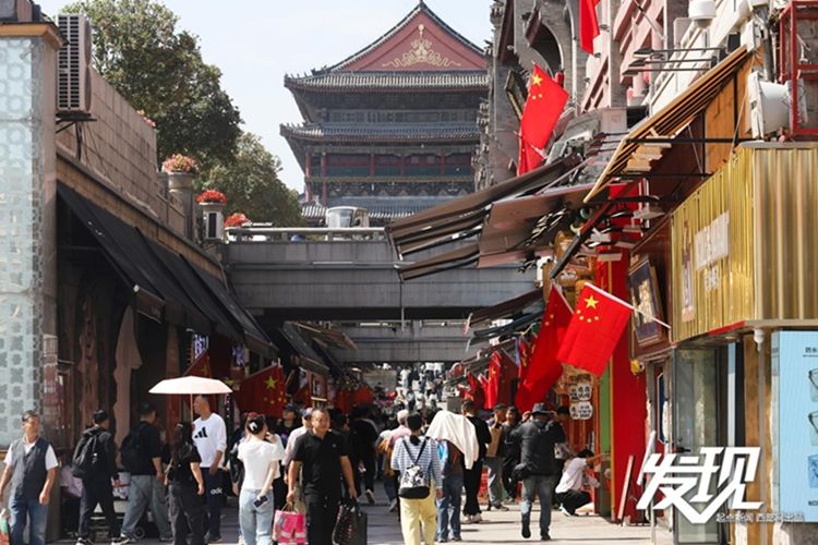 金风送爽,丹桂飘香,明天(10月1日)将迎来中华人民共和国成立76周年,西安的大街小巷处处洋溢着喜庆的氛围,街头的鲜花和国旗将城市装扮得生机盎然,成为了一道道亮丽的风景线。飘扬的国旗与古老的钟楼相得益彰,庄严肃穆的同时不失热闹,吸引了众多游客前来拍照打卡。
